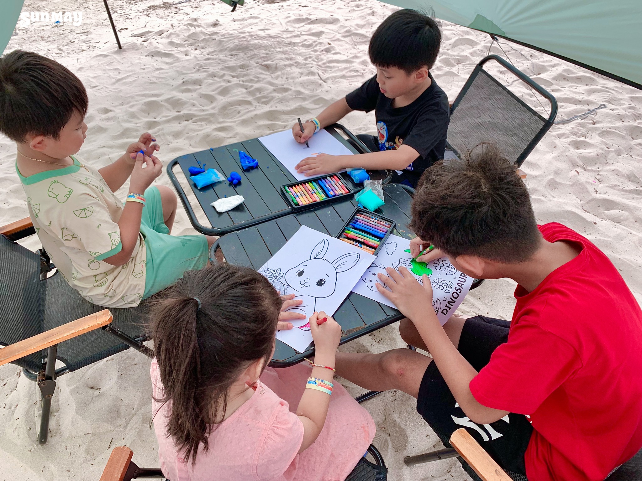 Sáng tạo nghệ thuật theo nhóm: Mỗi nhóm sẽ cùng nhau vẽ tranh theo chủ đề, thay phiên thể hiện ý tưởng, giúp kích thích khả năng sáng tạo và học cách lắng nghe.