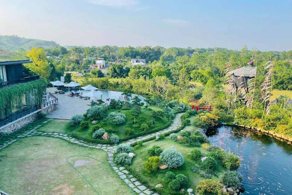 Hòa mình vào không gian xanh mát, tận hưởng không khí trong lành và nghỉ dưỡng tại khu lưu trú phong cách Nhật Bản.