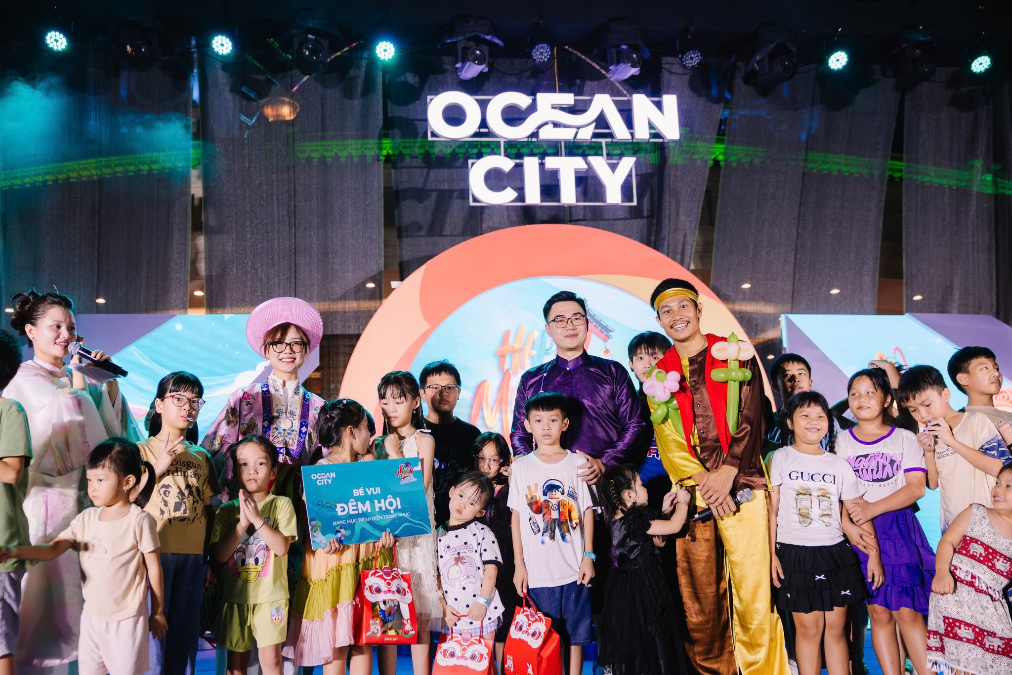 Fashion Show Nhí: 1 Giải Ngôi sao trăng rằm & 3 Giải Bé vui đêm hội – dàn mẫu nhí giàu năng lượng, có bé chỉ 3 tuổi vẫn tự tin sải bước.