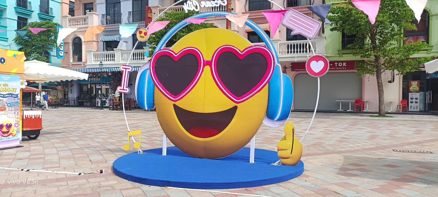 Check-in cùng mô hình Emoji - lưu lại khoảnh khắc dễ thương cùng loạt mô hình cảm xúc “quốc dân” để nhận ngay quà tặng là chiếc quạt cầm tay emoji ngộ nghĩnh.