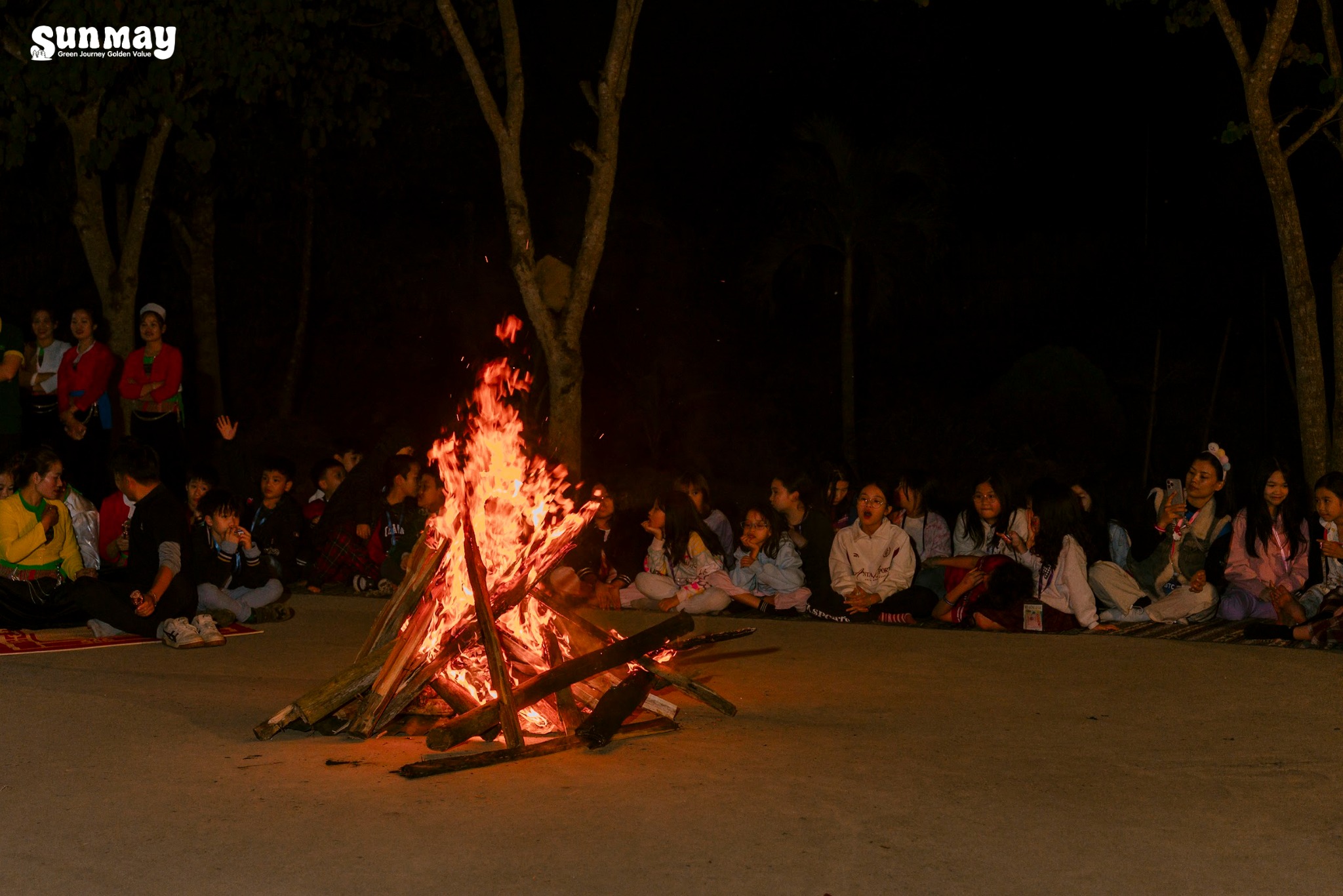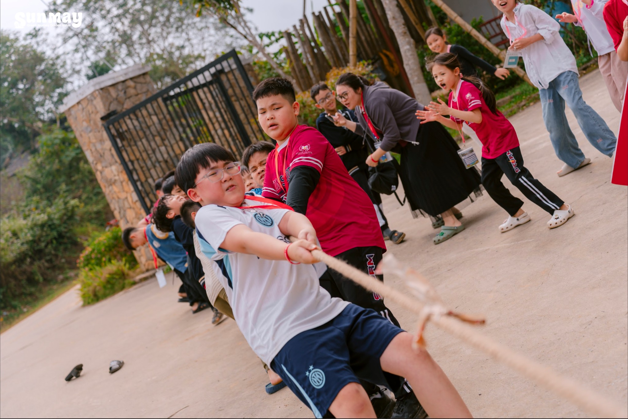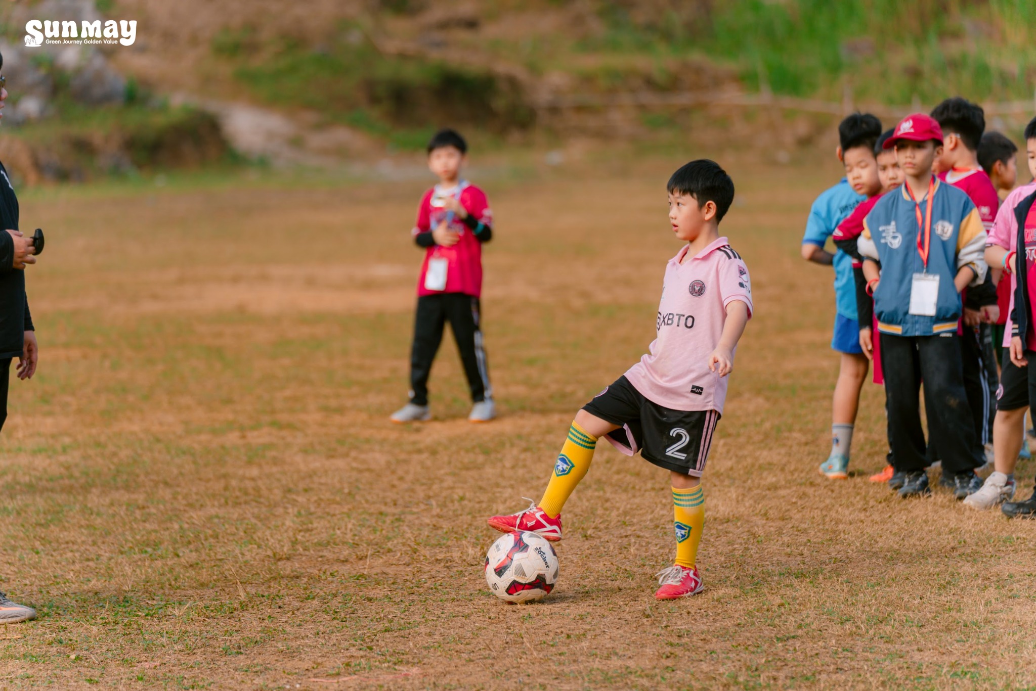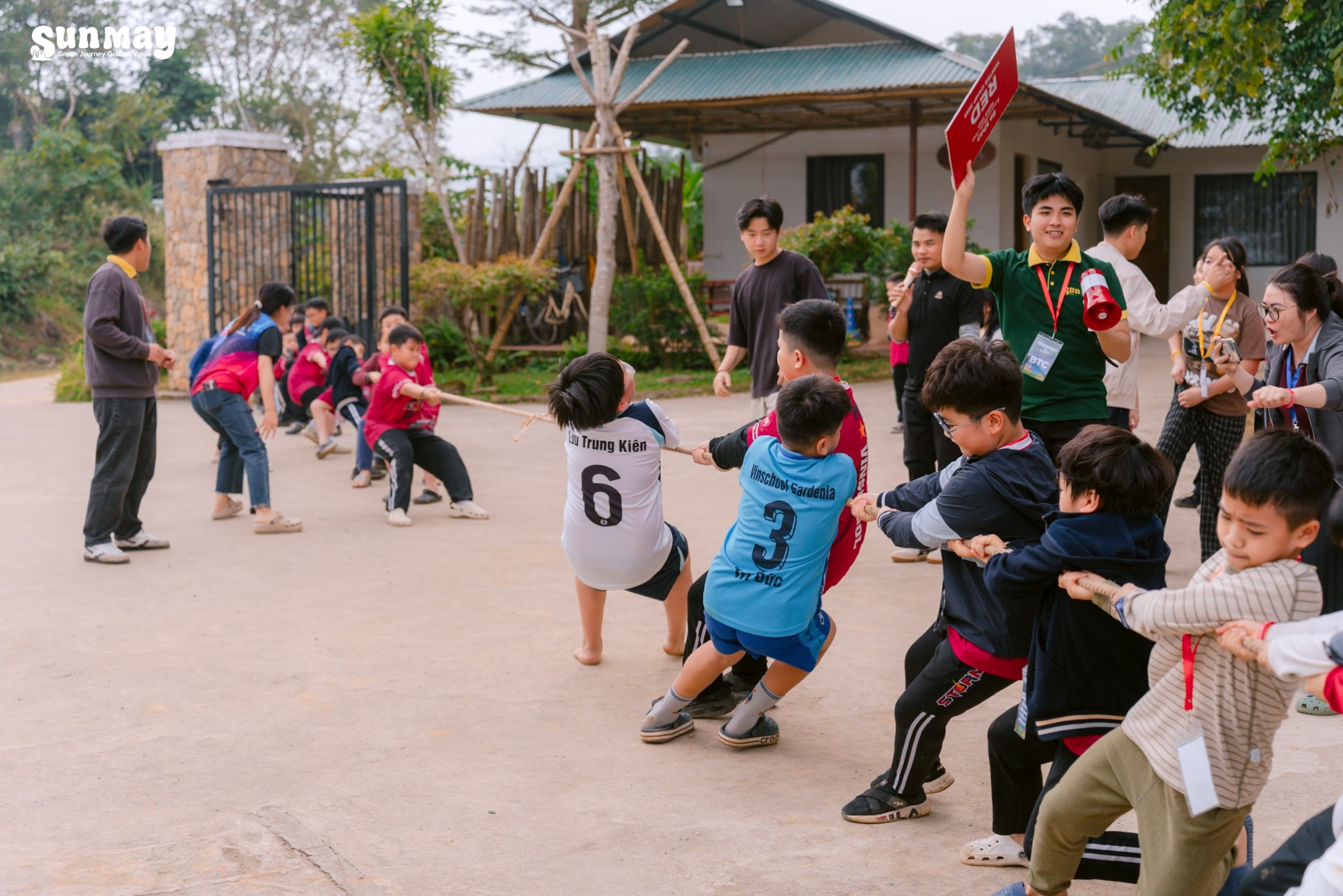 Không khí trại luôn sôi động với các hoạt động vận động và gắn kết: đá bóng giao lưu cùng các bạn học sinh Ba Khan, kéo co giữa các nhóm nhà, tiếng hò reo vang lên khắp sân trại.