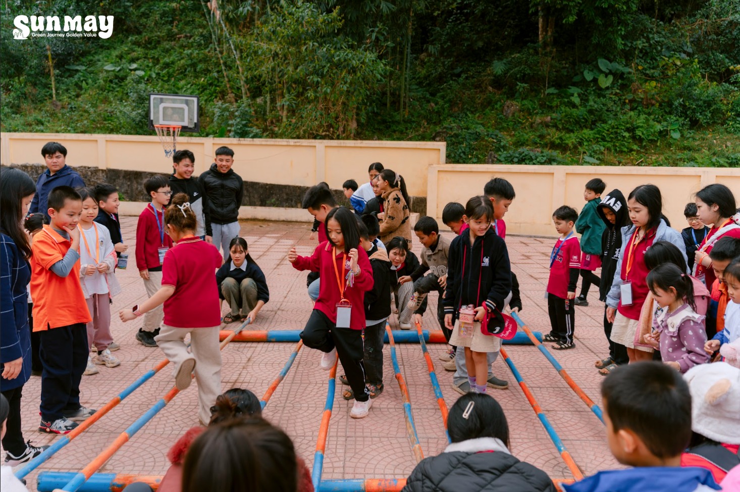 Sang Ngày 3 và Ngày 4, các con tiếp tục hành trình kết nối khi đến thăm quan và giao lưu cùng các bạn học sinh Trường Tiểu học và THCS Ba Khan. Những trò chơi dân gian như cà kheo, nhảy sạp, nhảy bao bố… đã xóa nhòa mọi khoảng cách, để lại thật nhiều tiếng cười và kỷ niệm đáng nhớ.