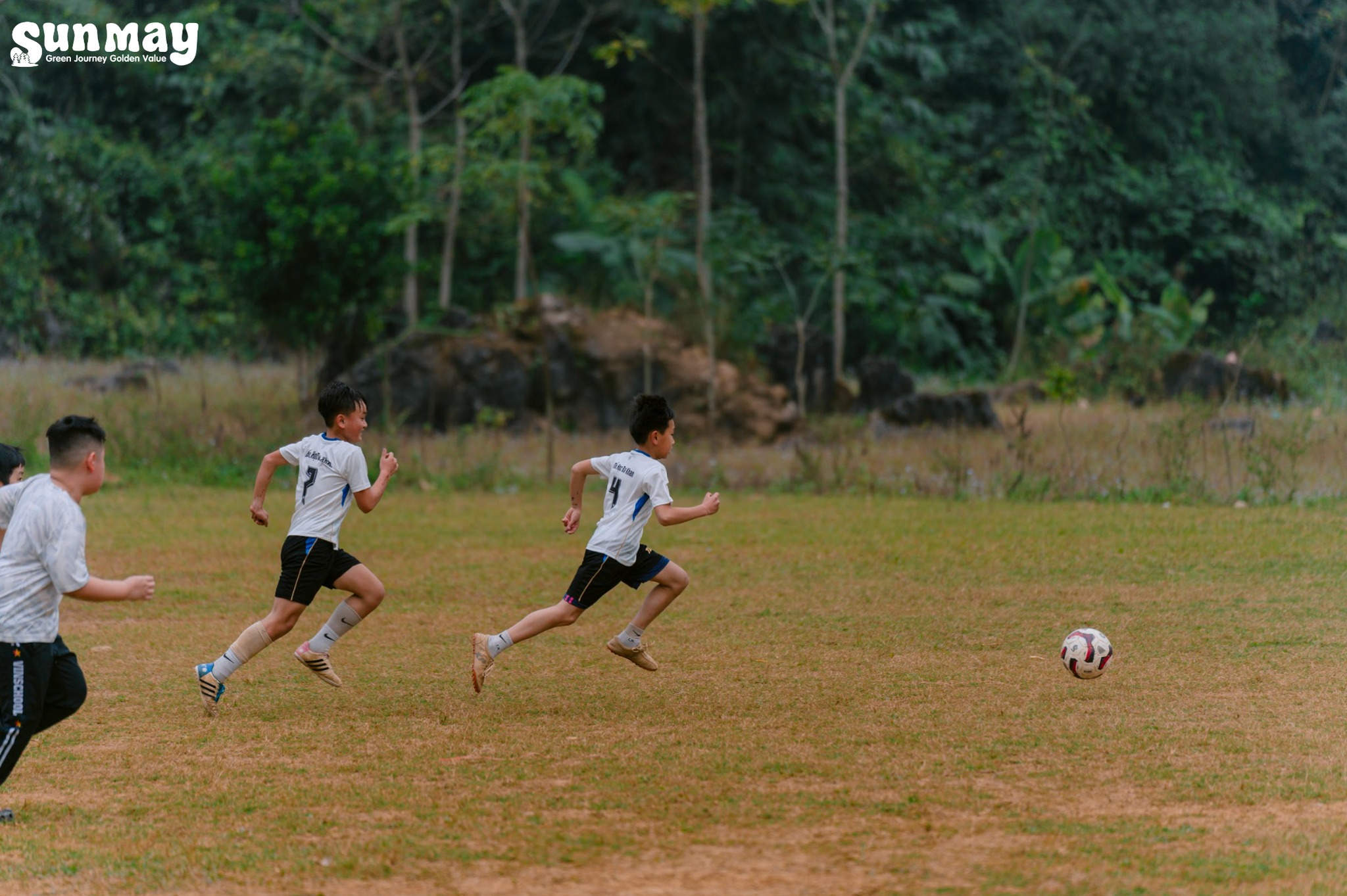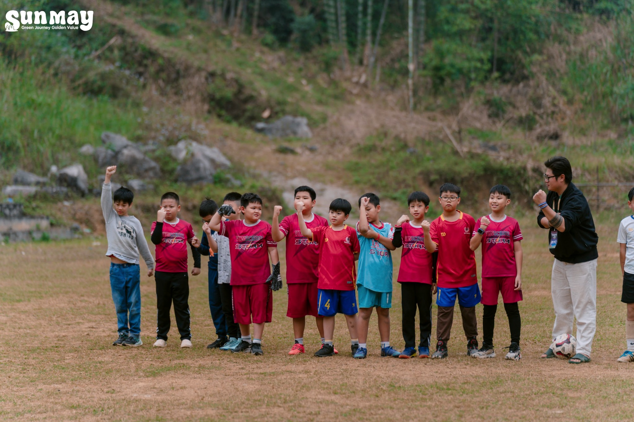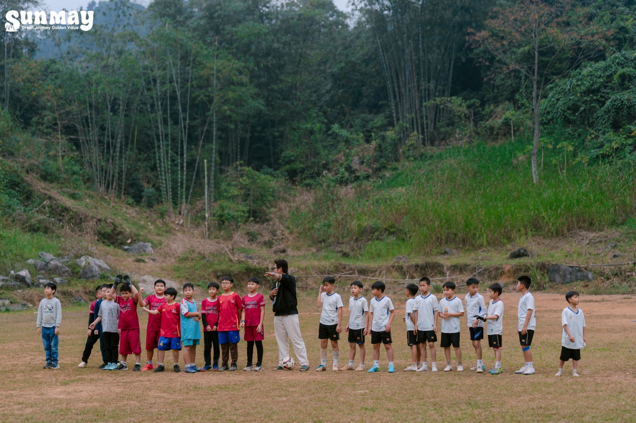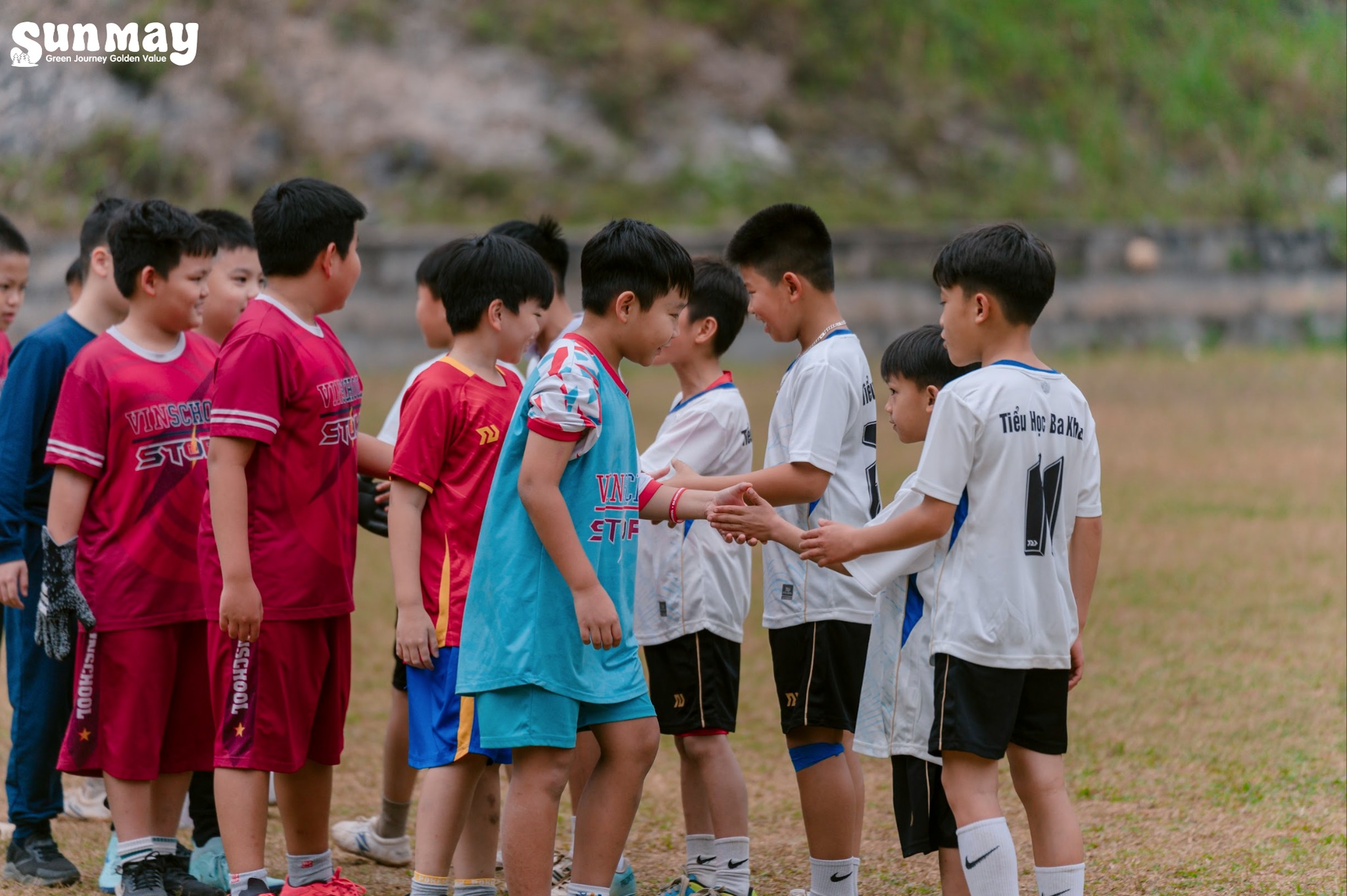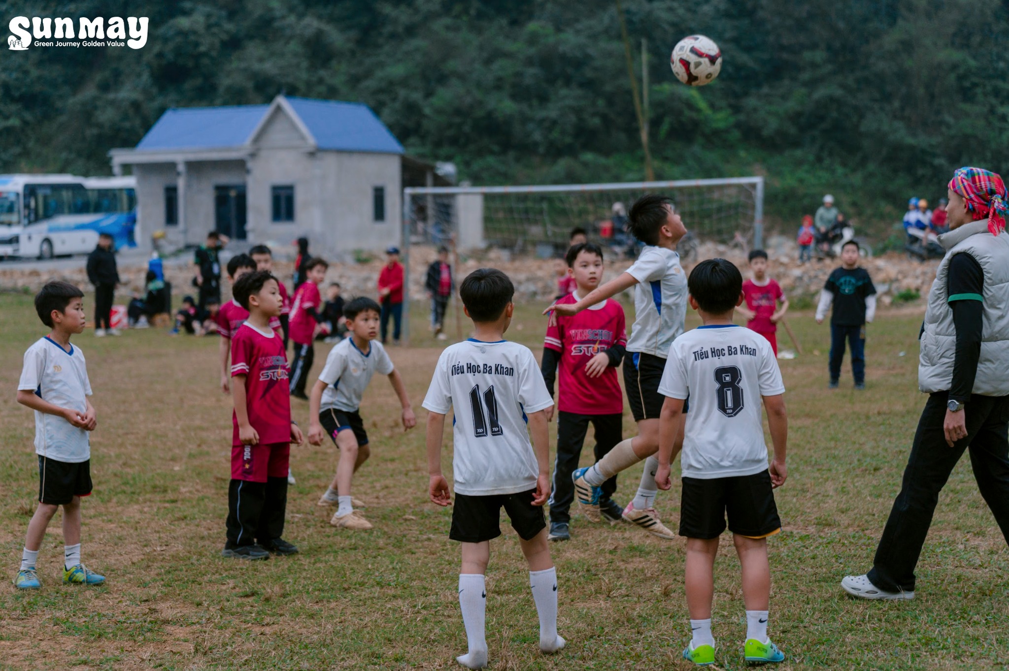 Song song đó, các bạn nam có cơ hội giao lưu đá bóng cùng các bạn học sinh trường Tiểu học Ba Khan. Trên sân cỏ nhỏ, những rào cản về khoảng cách hay môi trường sống nhanh chóng được xóa nhòa, thay vào đó là tinh thần thể thao, sự sẻ chia và những nụ cười rất thật.