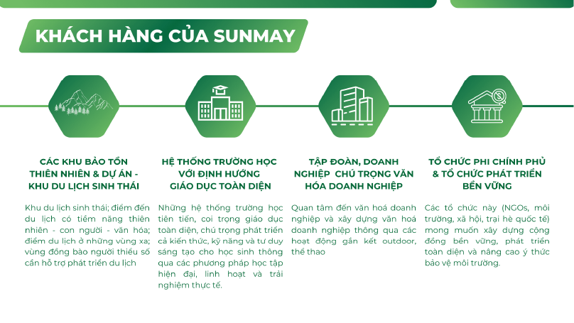Với doanh nghiệp: Sun May tư vấn và tổ chức sự kiện ngoài trời, gắn kết hoạt động trải nghiệm với chiến lược xây dựng thương hiệu bền vững, góp phần nâng cao tinh thần đoàn kết nội bộ và tạo dấu ấn thương hiệu độc đáo.