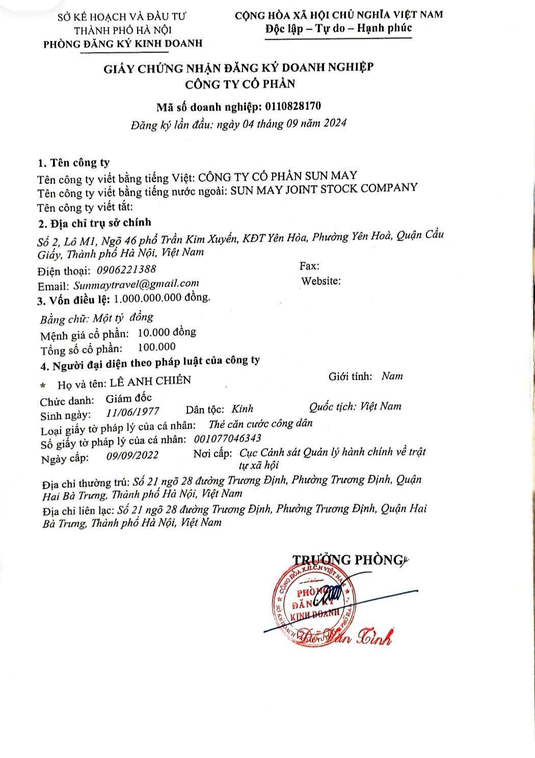 Người đại diện: Lê Anh Chiến